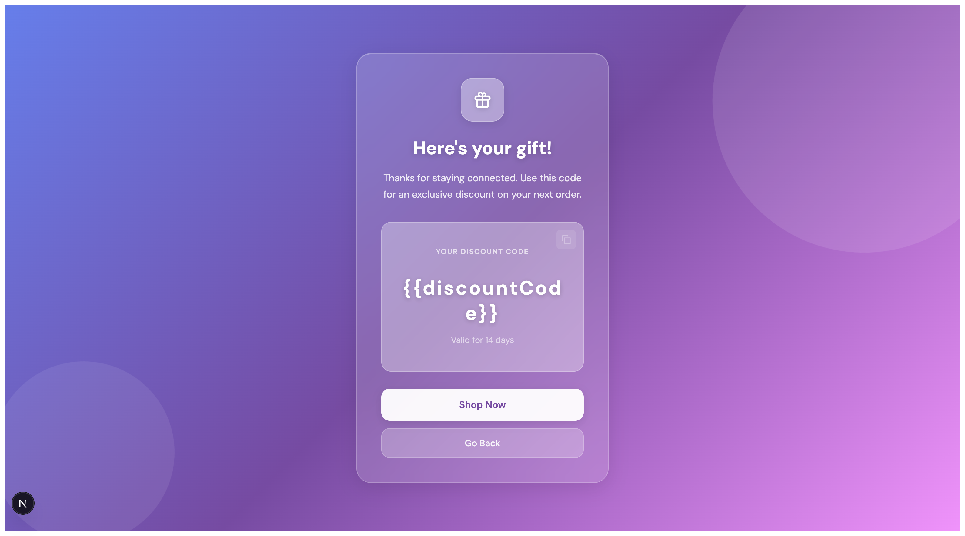 - Discount Code Display - Prominently shows the code they can use